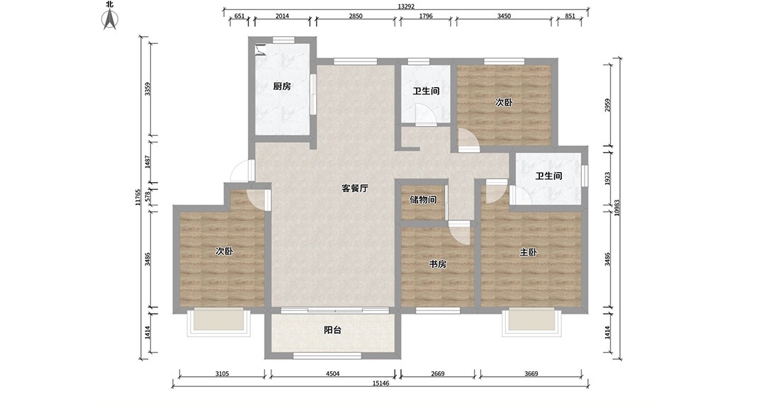 桂花園132㎡三室兩廳陽臺(tái)現(xiàn)代簡約風(fēng)格裝修案例效果圖