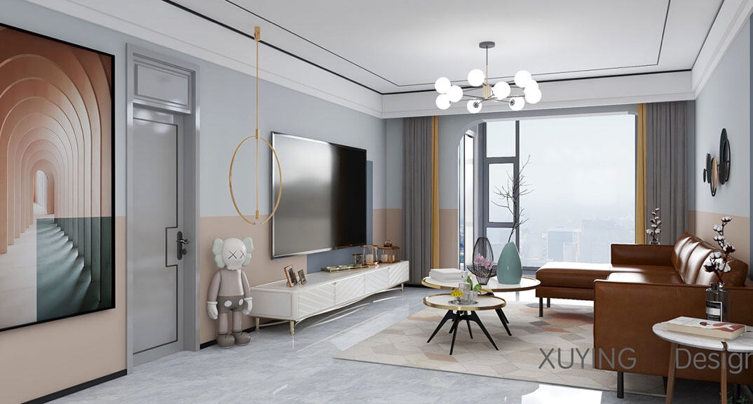 海棠映月150㎡四室兩廳客廳現(xiàn)代輕奢風(fēng)格裝修案例效果圖