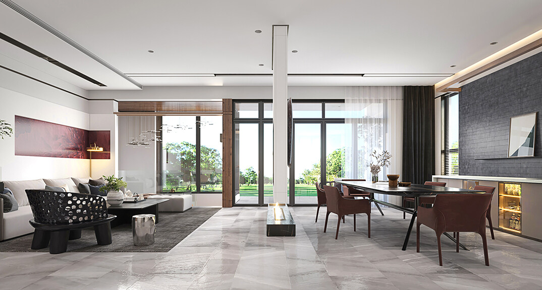 綠城·留香園300㎡別墅客餐廳輕奢風(fēng)格裝修案例效果圖