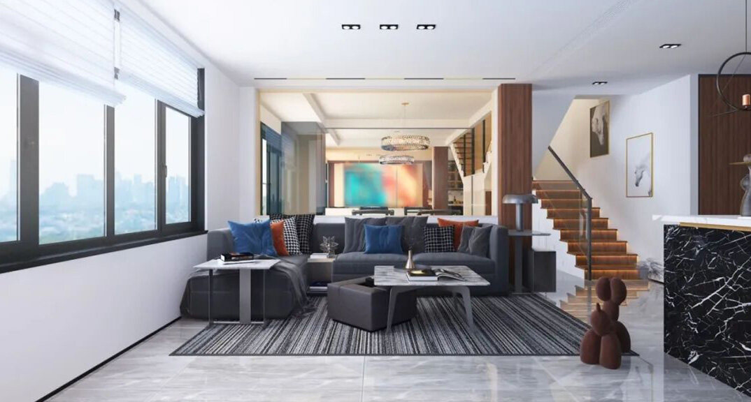 招商·海語(yǔ)墅260㎡別墅客廳沙發(fā)簡(jiǎn)美風(fēng)格裝修案例效果圖