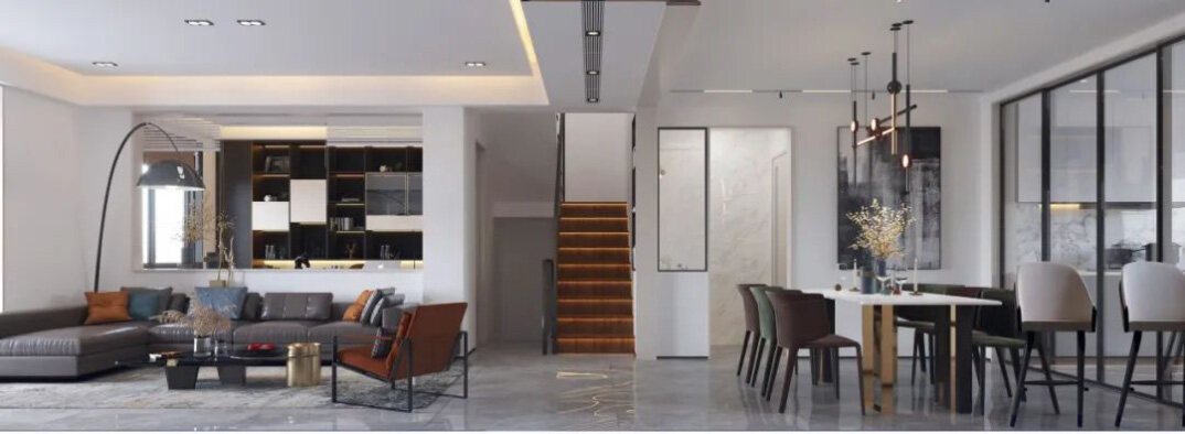 招商·海語(yǔ)墅260㎡別墅客餐廳簡(jiǎn)美風(fēng)格裝修案例效果圖