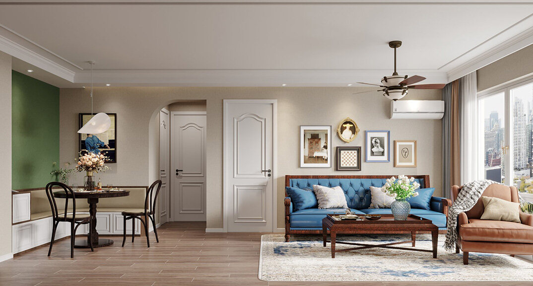 海洋地質(zhì)所120㎡三室兩廳美式風(fēng)格裝修vr全景