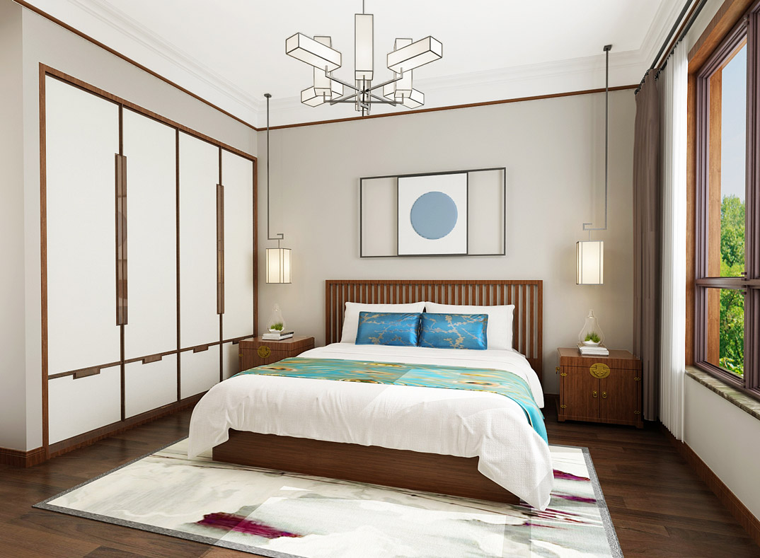 市直三區(qū)260㎡平層臥室新中式風(fēng)格裝修案例效果圖