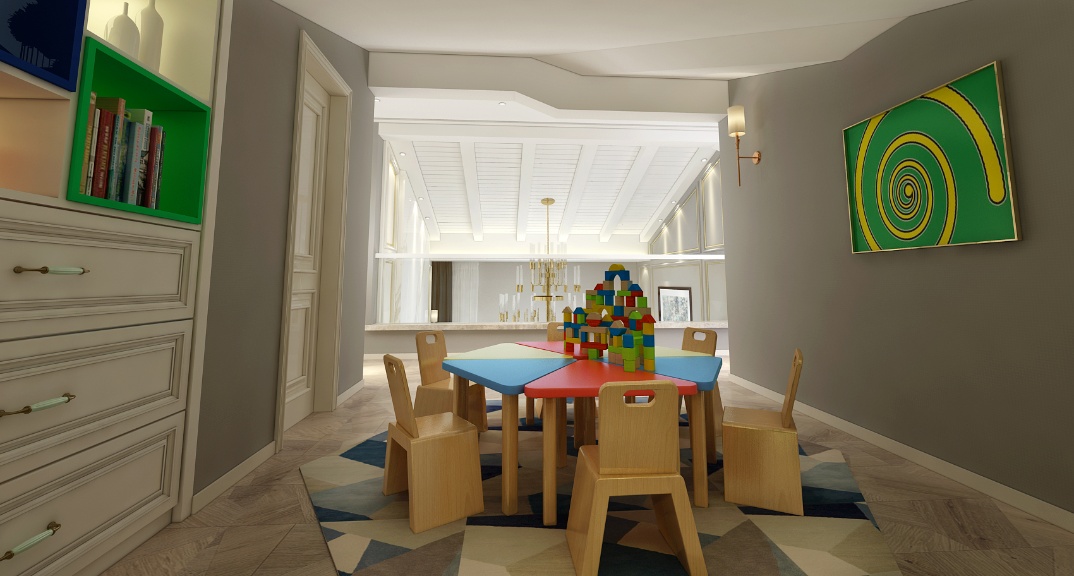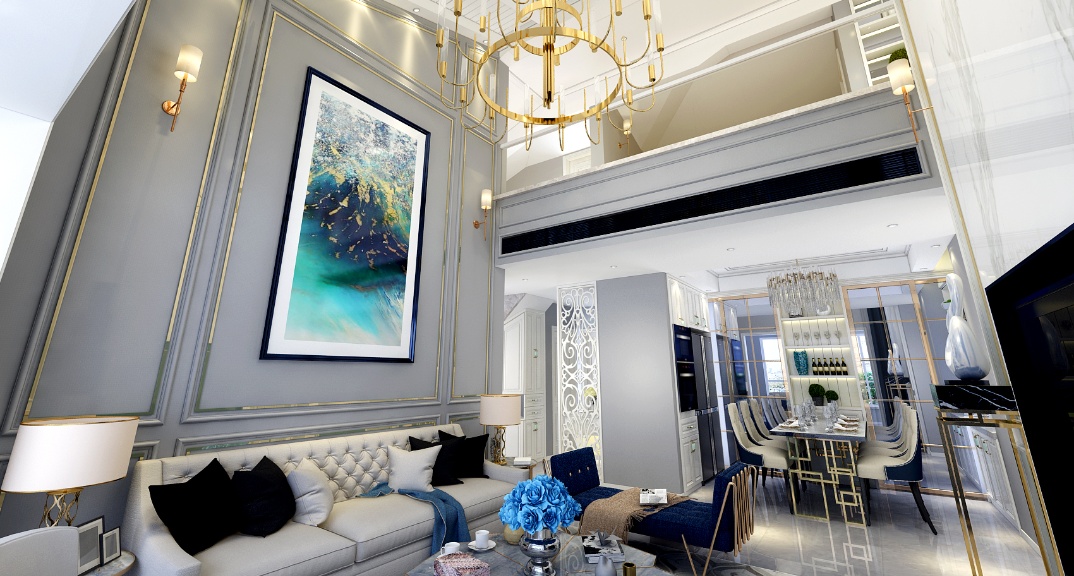 青島裝修公司-金鳳凰銘品復(fù)式-美式輕奢風格-東方家園裝飾
