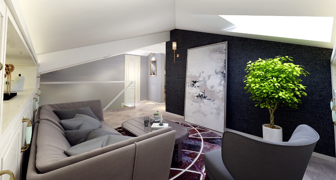 業(yè)主是一位事業(yè)有成的成功人士,以前也自己裝修過幾套房子,但都不是特別滿意,這次購買的是一套頂層復(fù)式的房子,想好好裝修一下,也對比了很多裝修公司,都可以但也不是特別滿意,自己也說不上哪兒不對。設(shè)計師接到這個委托后,對房屋做了細致的勘察,也聽從了業(yè)主的很多要求和想法,這個房子一樓和二樓在室內(nèi)不是聯(lián)通的,而且二樓的頂面非常不規(guī)則,四周高度也非常低,采光和通風也很差。首先要解決室內(nèi)樓梯的問題,利用北臥室的局部空間做出樓梯的位置,北側(cè)臥室剩余部分改成了衣帽間,主臥室的門口調(diào)整后,主臥室的儲物空間增加了一倍,解決了主臥室門沖衛(wèi)生間門的問題。廚房和餐廳做了一個90度的調(diào)整,不止增加了廚房和餐廳一倍的儲物空間,而且使得形成一個環(huán)形動線,使得廚房餐廳的空間動線更加順暢。最大的改動還是把原有客廳的頂面拆除,一是增加了客廳的高度,把原有二樓不太好利用的低矮空間移到一樓客廳,使整個客廳的空間提升了一個級別,形成挑空復(fù)式的效果,受益最大的還是二樓,這個改動解決了二樓的采光和通風問題,把原來閉塞陰暗的二樓變得明亮通暢,這也是客戶最滿意的改造之一。