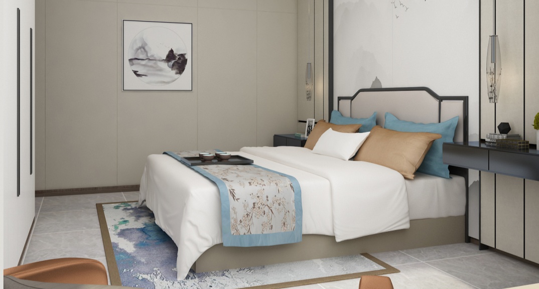 餐廳與客廳在一個(gè)空間統(tǒng)一處理,滿足會(huì)客就餐功能;進(jìn)門做開放式廚房,增加廚房操作空間,增加早餐導(dǎo)臺(tái);主臥開間比較大,床對(duì)面做定制衣柜,主衛(wèi)改成衣帽間,增加收納;兒童房及客房用定制衣柜,榻榻米增加收納空間,滿足學(xué)習(xí)及休息空間;陽臺(tái)設(shè)置洗衣機(jī),增加學(xué)習(xí)區(qū)。