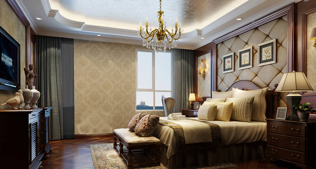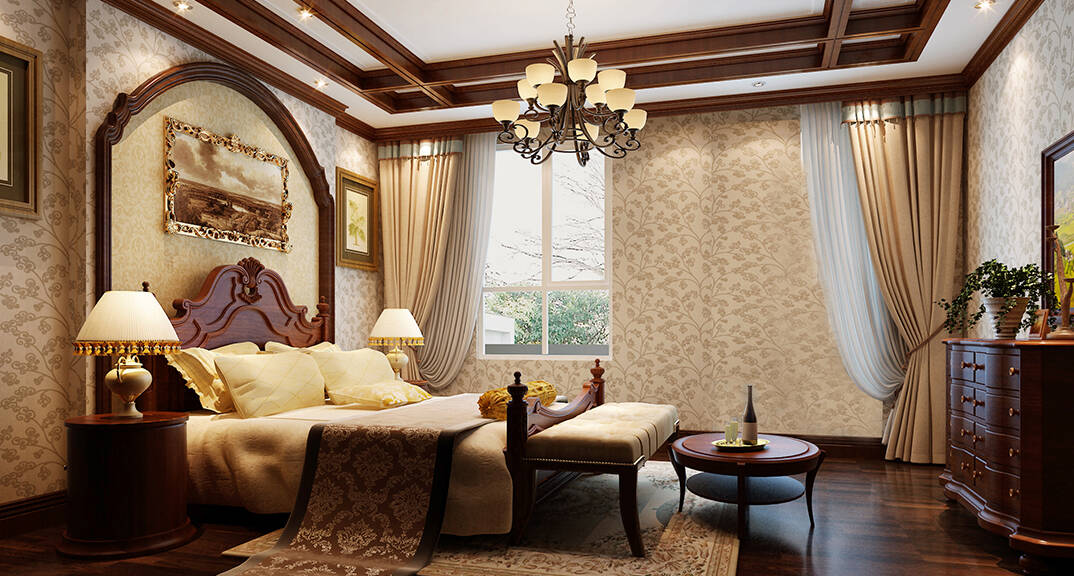 安納溪204㎡別墅臥室沙發(fā)美式風格裝修案例效果圖