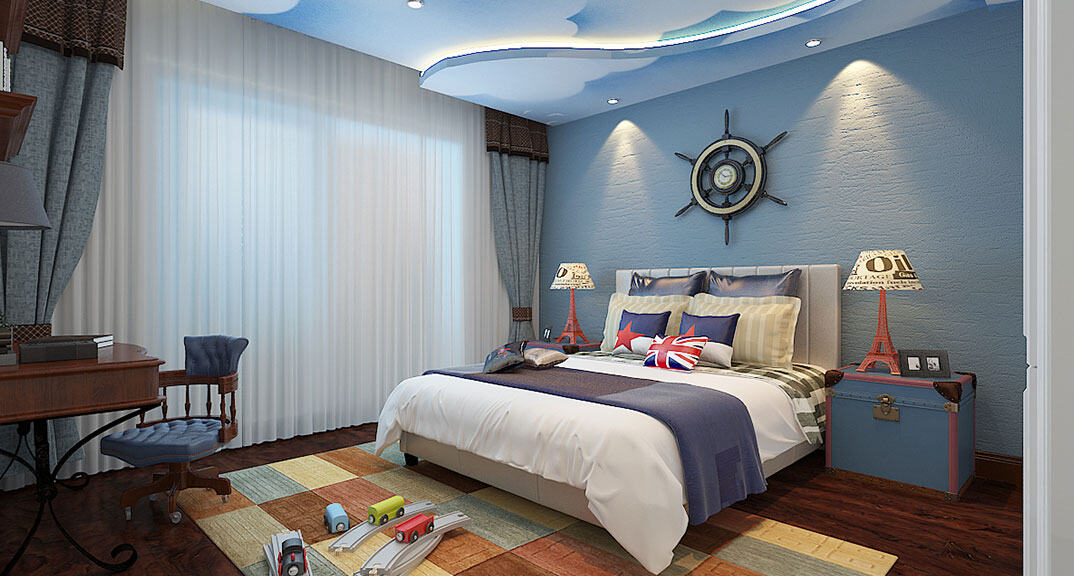 安納溪204㎡別墅男孩房美式風格裝修案例效果圖