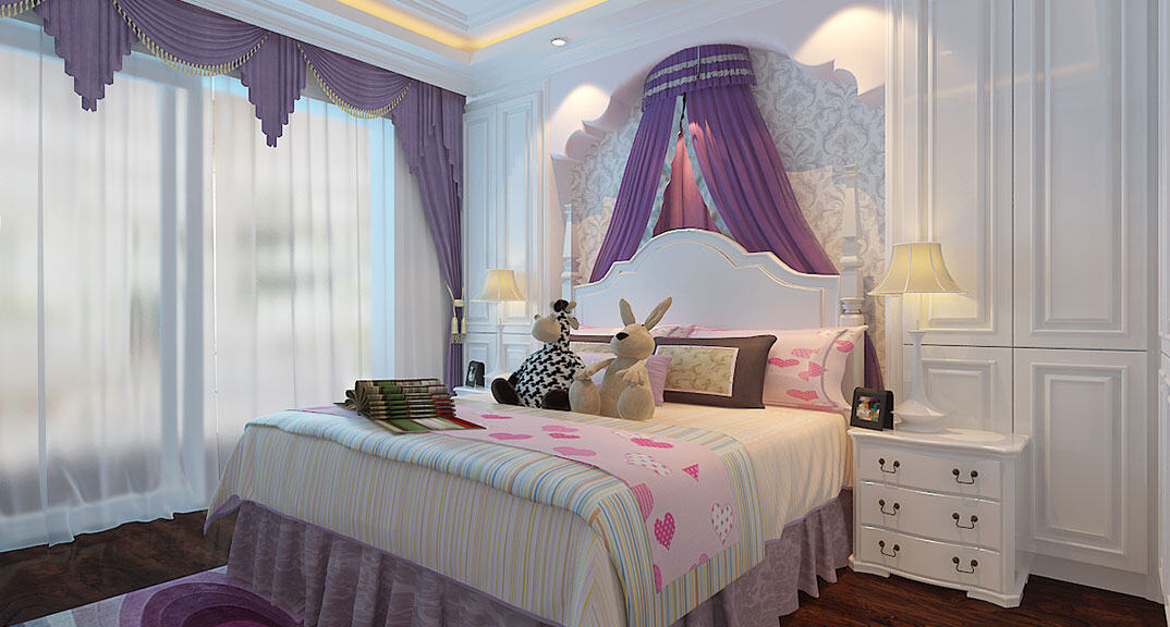 安納溪204㎡別墅女兒房美式風格裝修案例效果圖