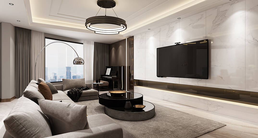 燕島國(guó)際270㎡四室兩廳客廳現(xiàn)代風(fēng)格裝修案例效果圖