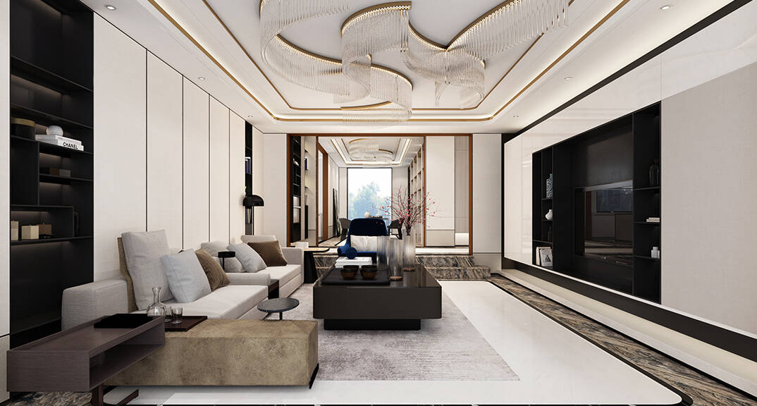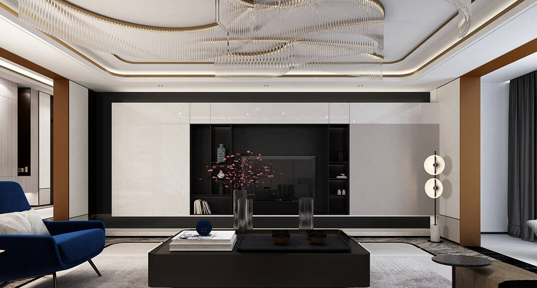 本案房屋,就像一張空白的畫布,透過設(shè)計(jì)師的精湛手法,涂抹上層層的創(chuàng)意精采,最后呈現(xiàn)的是現(xiàn)代大氣磅礴的氛圍。柔軟的布藝配飾,奠定了現(xiàn)代感的風(fēng)格基調(diào),設(shè)計(jì)師以實(shí)用的功能為基礎(chǔ),對(duì)使用的材料和色彩燈光等元素進(jìn)行改造。