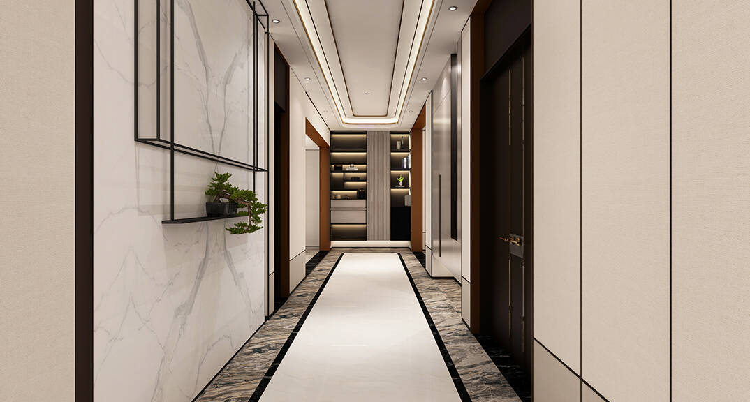 本案以淺白色為主,米白色大理石,為房間氣氛添姿.科技木深沉低調(diào),不乏現(xiàn)代感.