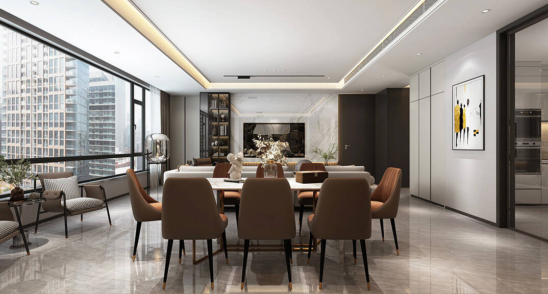 整體簡(jiǎn)歐風(fēng)格在設(shè)計(jì)上用經(jīng)典軸線(xiàn)、對(duì)稱(chēng)布局的方式,結(jié)合淡雅的空間色調(diào)或幾何線(xiàn)條與典雅時(shí)尚的陳設(shè)軟裝,打造出一個(gè)歐式輕奢的現(xiàn)代主義格調(diào)。
