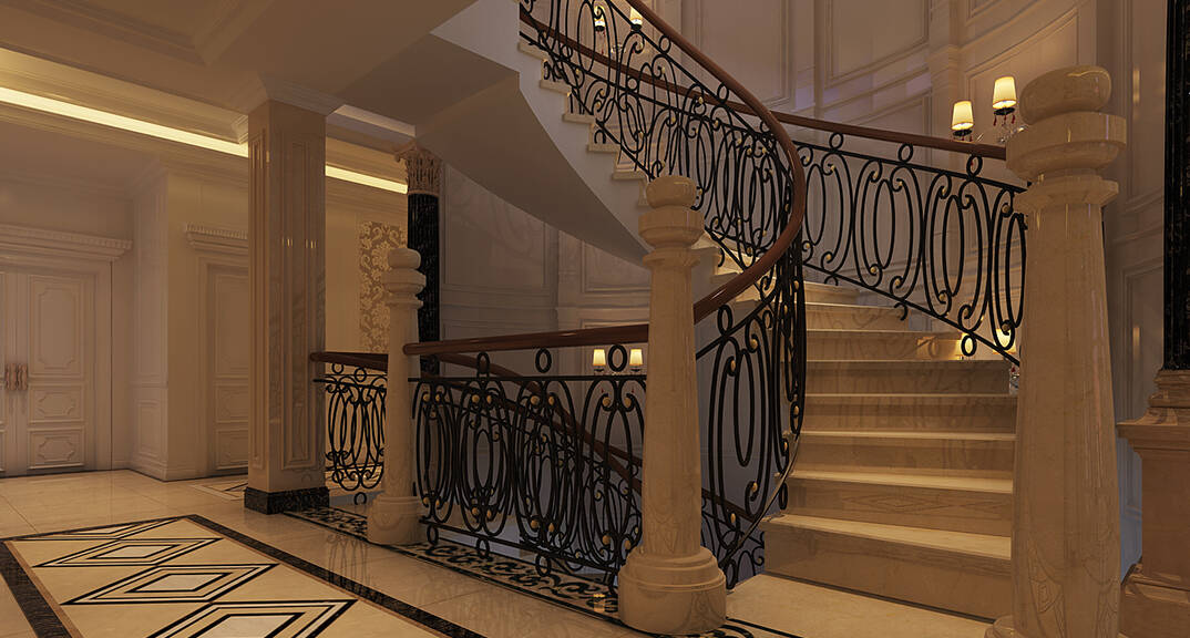 麥島金岸2000㎡別墅一樓樓梯間簡歐風(fēng)格裝修案例效果圖