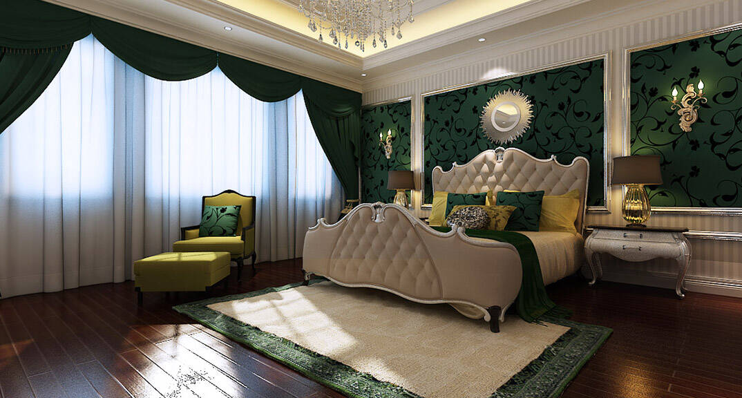 麥島金岸2000㎡別墅二樓臥室簡歐風(fēng)格裝修案例效果圖