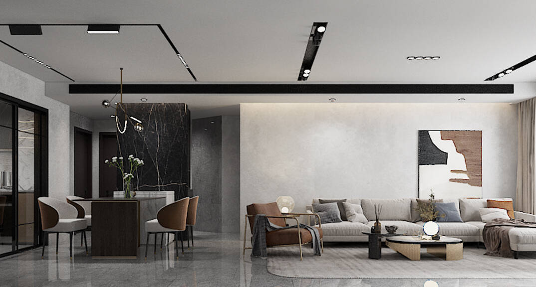海爾世紀(jì)公館150㎡平層客餐廳現(xiàn)代極簡(jiǎn)風(fēng)格裝修案例效果圖