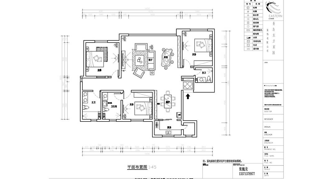 本案將中國文化因素施以現(xiàn)代手法予以表現(xiàn),賦予深刻的傳統(tǒng)文化內(nèi)涵。男主人為商人,比較喜歡實木,對傳統(tǒng)文化元素尤為喜愛,因為家里孩子小,所以對于整個空間的營造氛圍要求獨到,家里空間色調(diào)要求整體簡單明快,同時突出傳統(tǒng)根基,意境與內(nèi)涵,在簡單中體現(xiàn)細節(jié),在細節(jié)中透著穩(wěn)重的氣息。整個空間需要沉穩(wěn)大氣,線條簡練流暢,將水景,竹意,生機等體現(xiàn)傳統(tǒng)中式精華元素已入家中,明快的墻身,深色的木飾線條韻味深遠,古樸自然,使整個家里充滿中式的古色,但同時清新脫俗,低調(diào)精致,意境盎然同時硬朗、干練而生動。