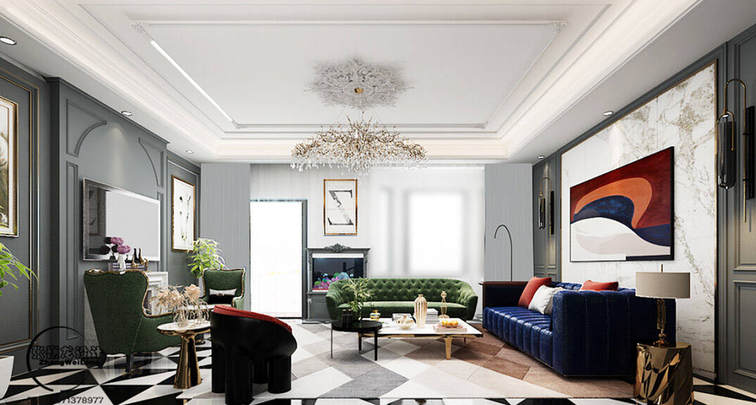 荷塘月色320平別墅輕奢風(fēng)格裝修-客廳