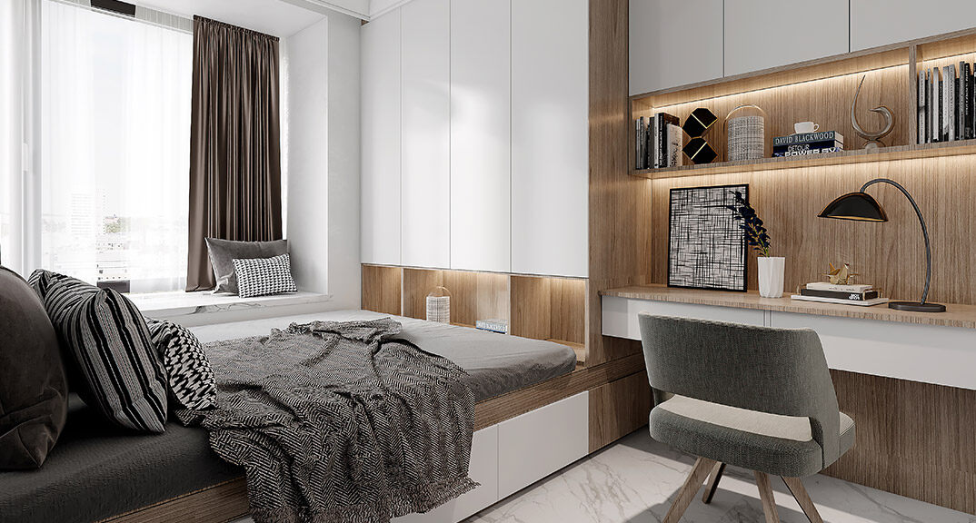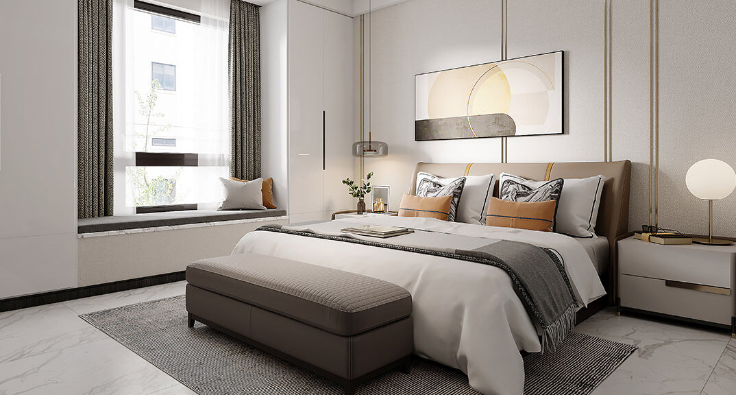 國(guó)際公館復(fù)式現(xiàn)代風(fēng)格一層臥室裝修效果圖