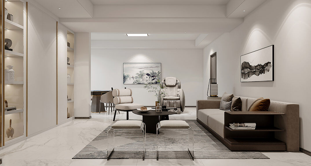 國(guó)際公館復(fù)式現(xiàn)代風(fēng)格負(fù)一層茶室裝修效果圖