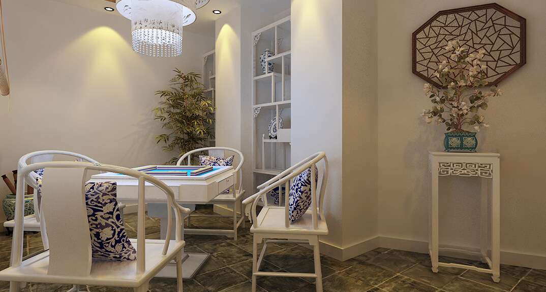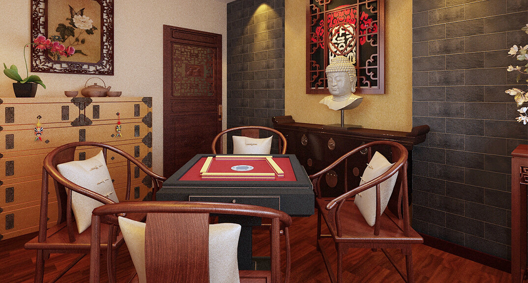 茶樓裝修200㎡茶室棋牌室中式風格案例效果圖-冬青