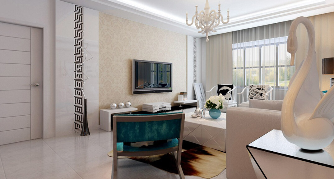 曉港名城146㎡三室一廳客廳電視新中式風(fēng)格裝修案例效果圖