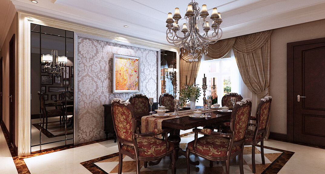 麥島金岸198㎡四室兩廳餐廳新中式風格裝修案例效果圖