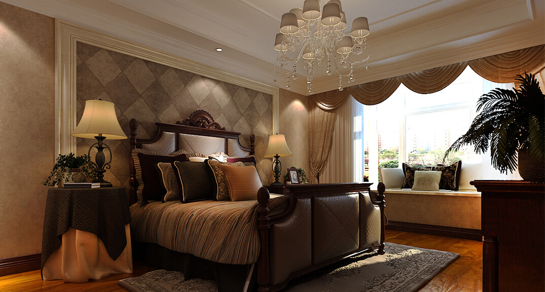 麥島金岸198㎡四室兩廳主臥新中式風格裝修案例效果圖