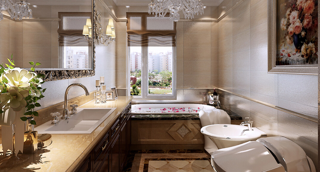 麥島金岸198㎡四室兩廳衛(wèi)生間新中式風格裝修案例效果圖