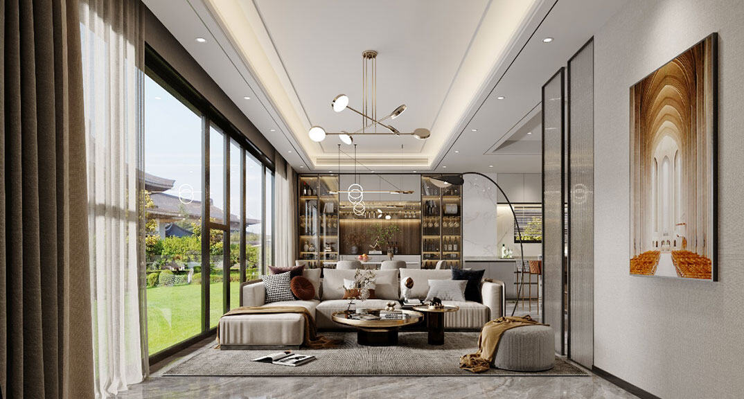 青島小鎮(zhèn)175㎡別墅下疊客廳沙發(fā)輕奢極簡(jiǎn)風(fēng)格裝修案例效果圖