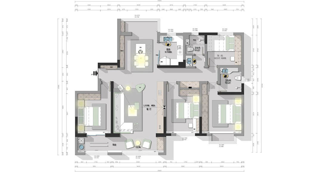 金域華庭176㎡四室兩廳衛(wèi)生間現(xiàn)代極簡風格裝修案例效果圖
