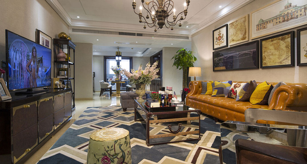 依云四季118㎡三室兩廳客廳沙發(fā)美式風格研發(fā)案例效果圖
