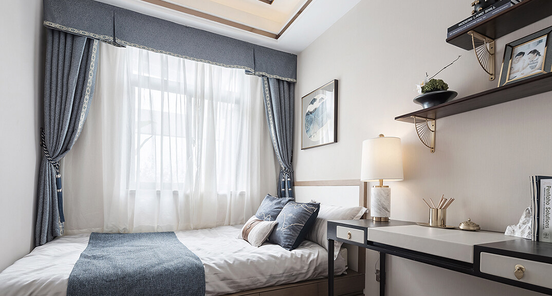 青特星城142㎡三室兩廳主臥新中式風(fēng)格裝修案例效果圖