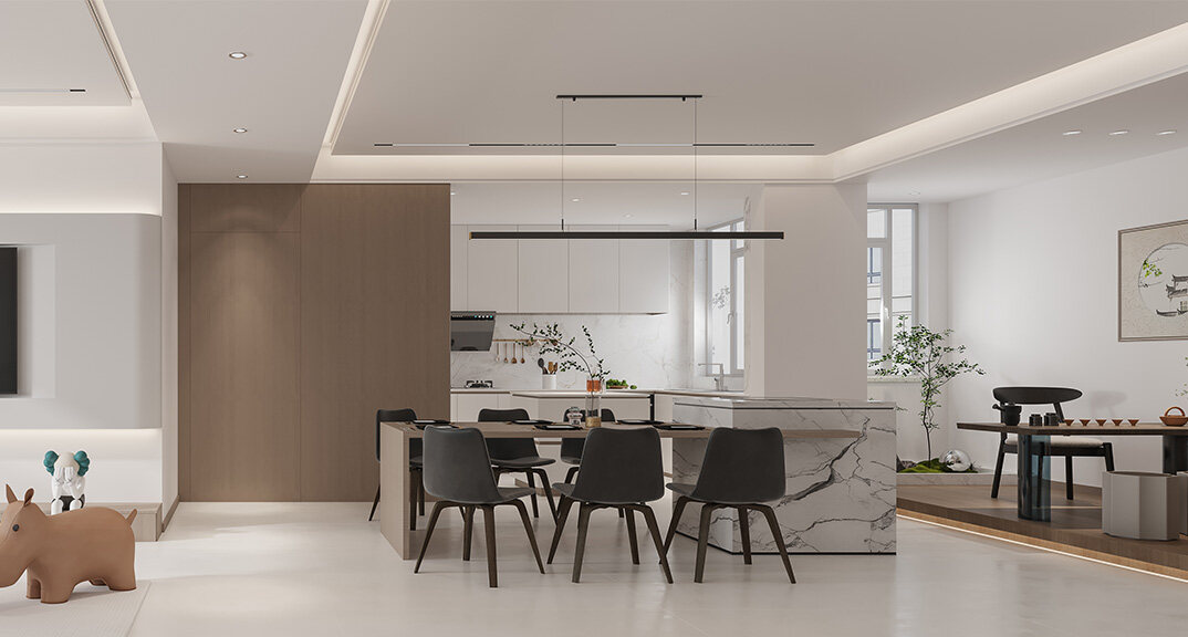 東岸世家167㎡三室兩廳客餐廳現(xiàn)代極簡風(fēng)格裝修案例效果圖