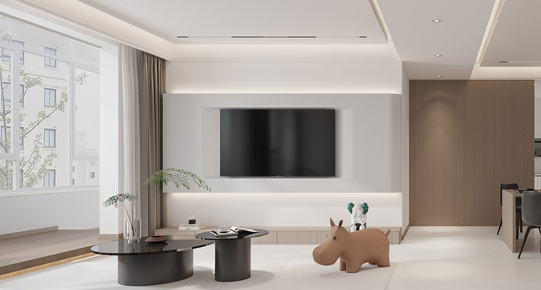 東岸世家167㎡三室兩廳客廳電視現(xiàn)代極簡風(fēng)格裝修案例效果圖
