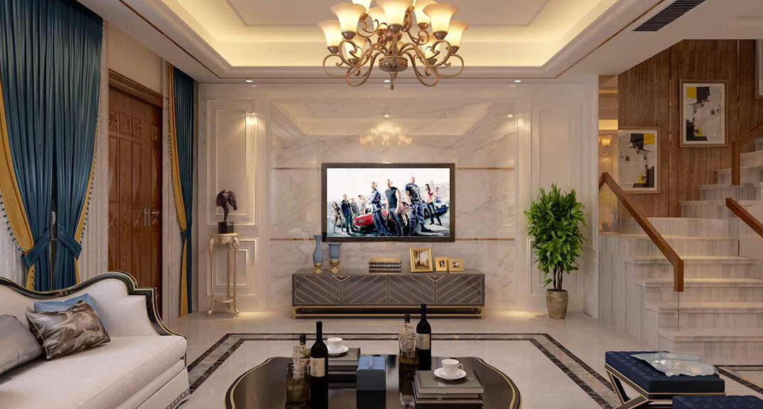 金秋泰和郡186㎡別墅客廳電視現(xiàn)代歐式風格裝修案例效果圖