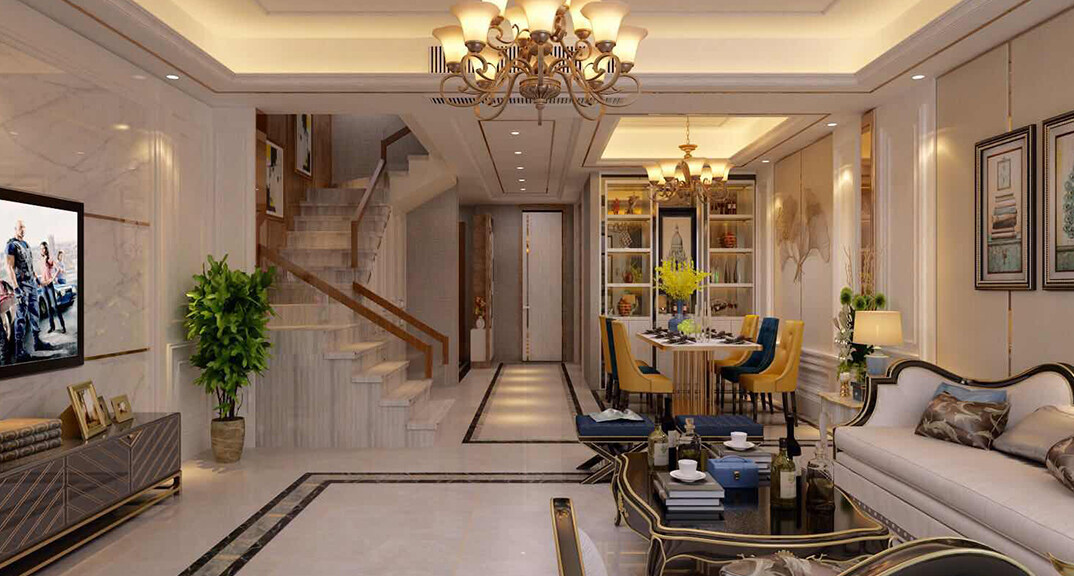 金秋泰和郡186㎡別墅客廳沙發(fā)現(xiàn)代歐式風格裝修案例效果圖