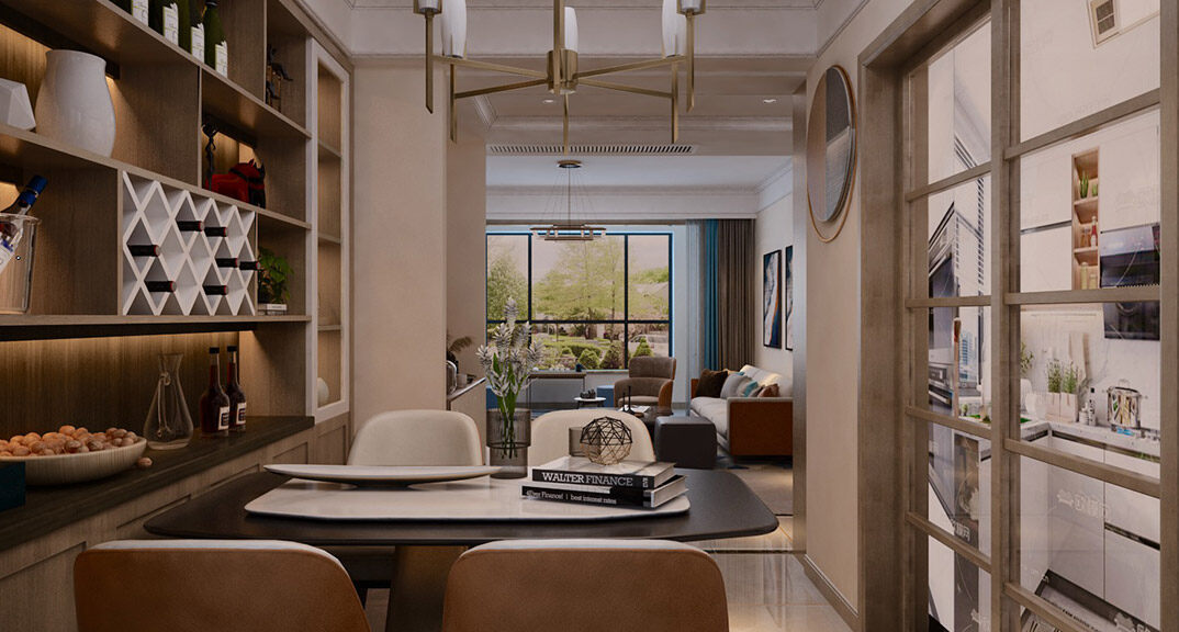 鑫江合院270㎡別墅餐廳現(xiàn)代風(fēng)格裝修案例效果圖