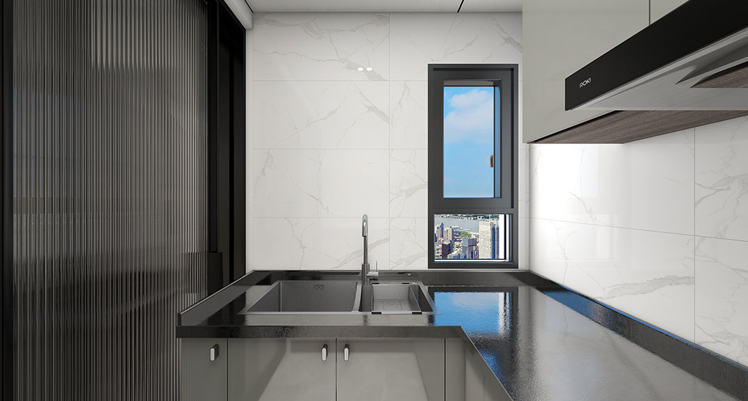 中歐國際城88㎡三室兩廳廚房簡約風(fēng)格裝修案例效果圖