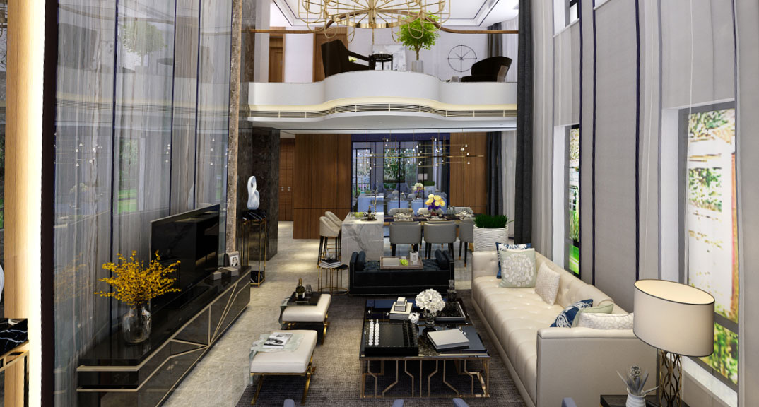 名悅山莊700㎡獨(dú)棟別墅港式風(fēng)格裝修案例效果圖