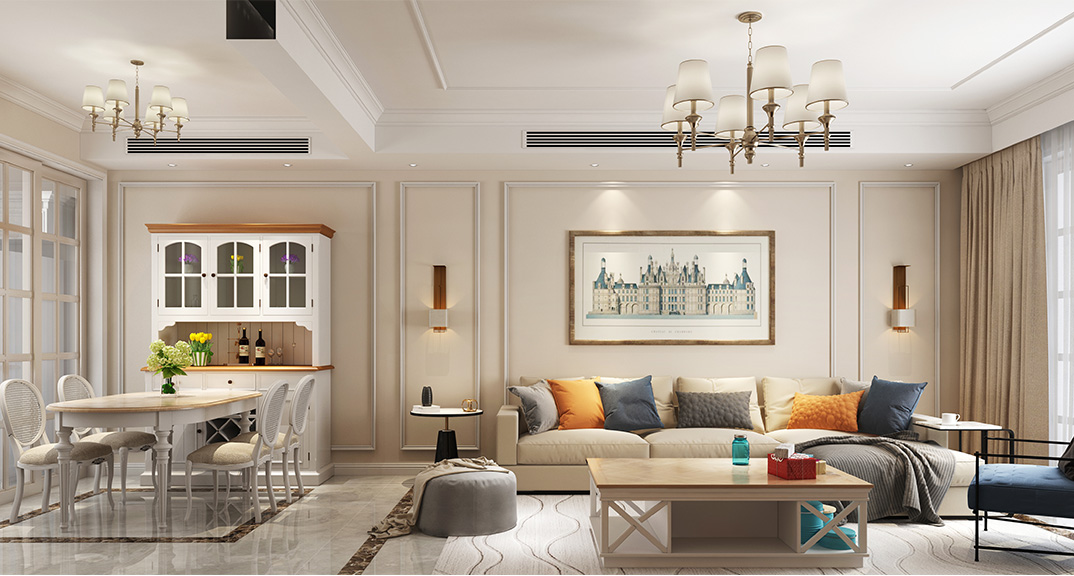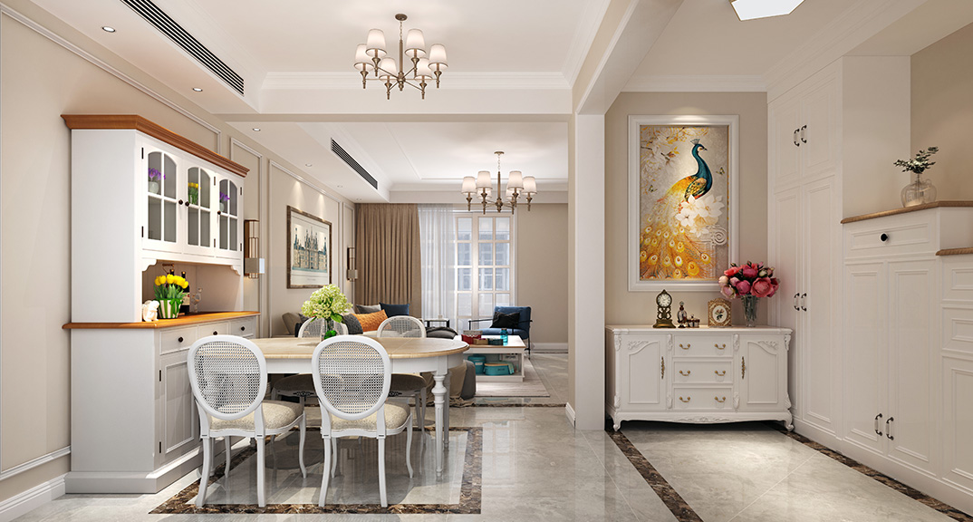 壹號(hào)學(xué)府135㎡三室兩廳客餐廳美式風(fēng)格裝修案例效果圖