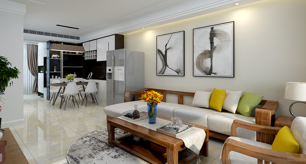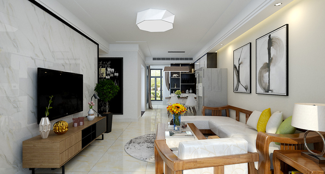 安泰名筑190㎡四室兩廳客廳現(xiàn)代中式風格裝修案例效果圖