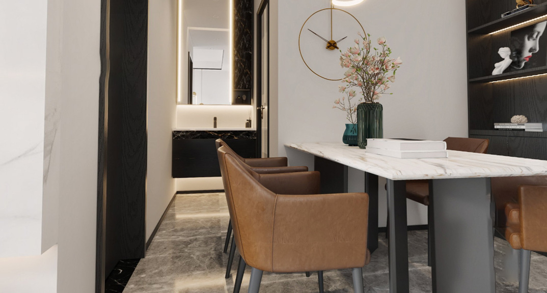 萊頓小鎮(zhèn)94㎡三室兩廳餐廳現(xiàn)代簡(jiǎn)約風(fēng)格裝修案例效果圖