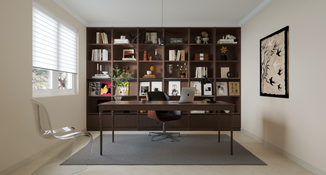 進(jìn)門(mén)玄關(guān)設(shè)計(jì)鞋柜圍合空間,讓業(yè)主回家換衣變得更有儀式感,客廳采用開(kāi)放式設(shè)計(jì),連接餐廳和廚房,打造寬敞明亮的活動(dòng)空間。整個(gè)空間選擇簡(jiǎn)約大方的家具,營(yíng)造出溫馨舒適的居家氛圍,更顯女主人浪漫細(xì)膩的性格。書(shū)房采用深色調(diào)家具點(diǎn)綴,男主人的私享空間,凸顯穩(wěn)重一家之主的氣質(zhì)。
