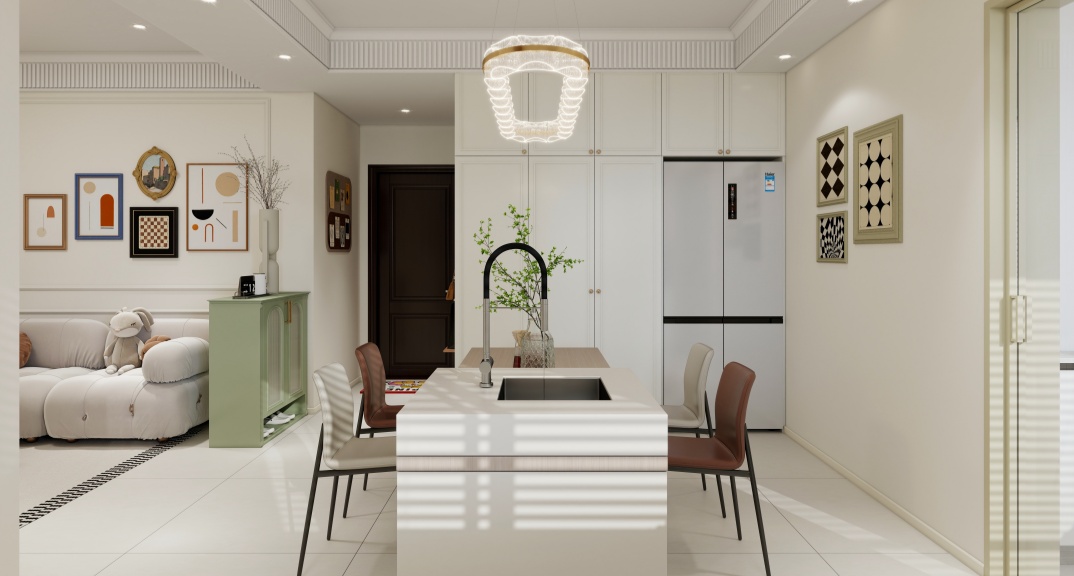 本案例整體風格運用了法式奶油,因原始戶型布局不合理,進行了整體改造;